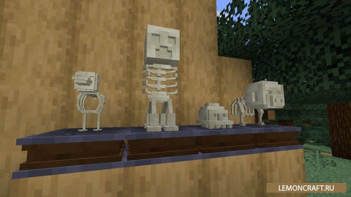 Мод на добычу останков Fossil дает вам возможность осуществлять добычу окаменелых останков, из которых вы сможете получить скелеты для декоративного оформления ваших помещений. Для создания скелета вам нужно создать новый блок и заспавнить археолога. Далее путем обмена добытых останков у археолога вы получите готовые скелеты.